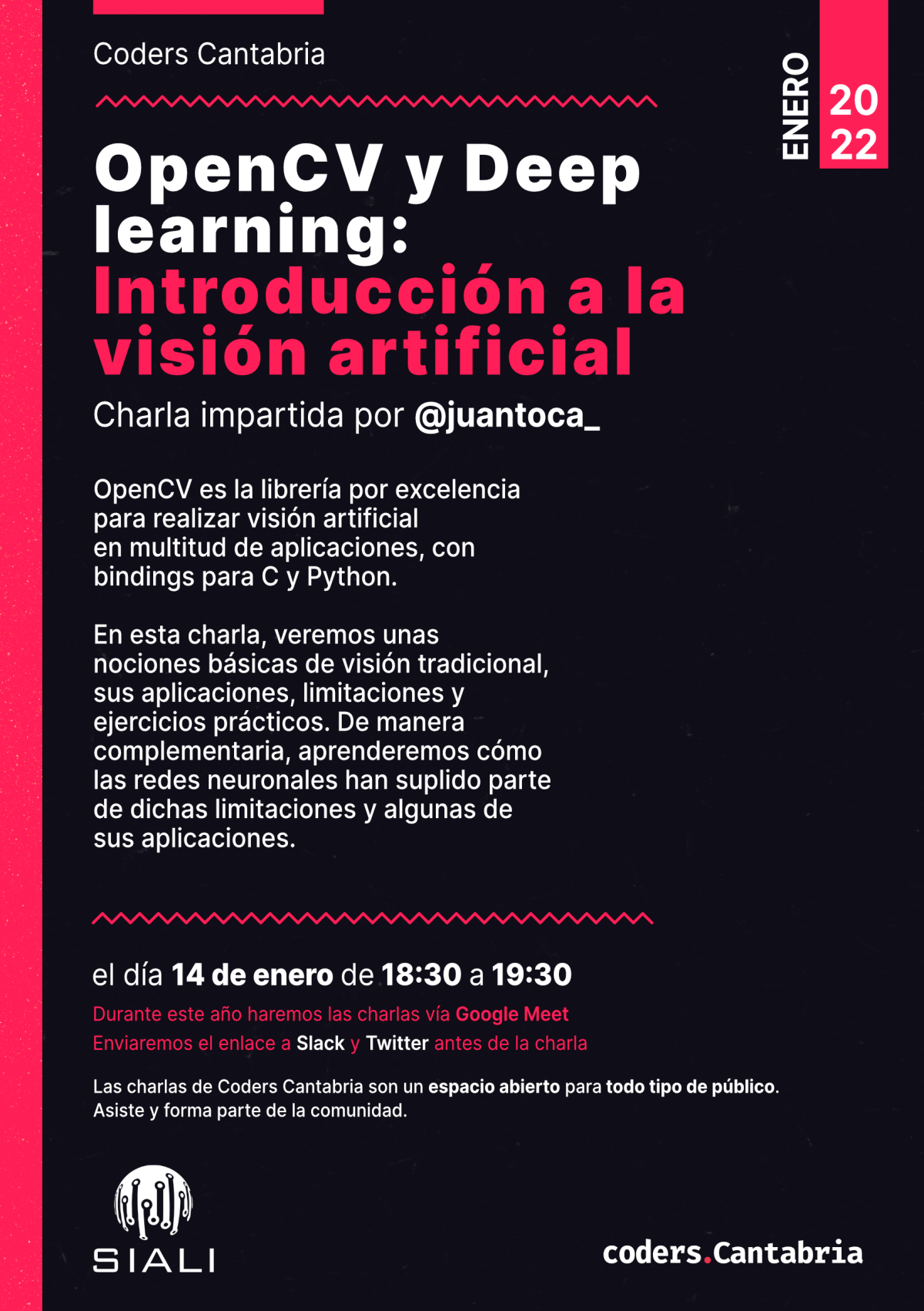 En esta charla, veremos unas nociones básicas de visión tradicional, sus aplicaciones, limitaciones y ejercicios prácticos. De manera complementaria, aprenderemos cómo las redes neuronales han suplido parte de dichas limitaciones y algunas de sus aplicaciones.