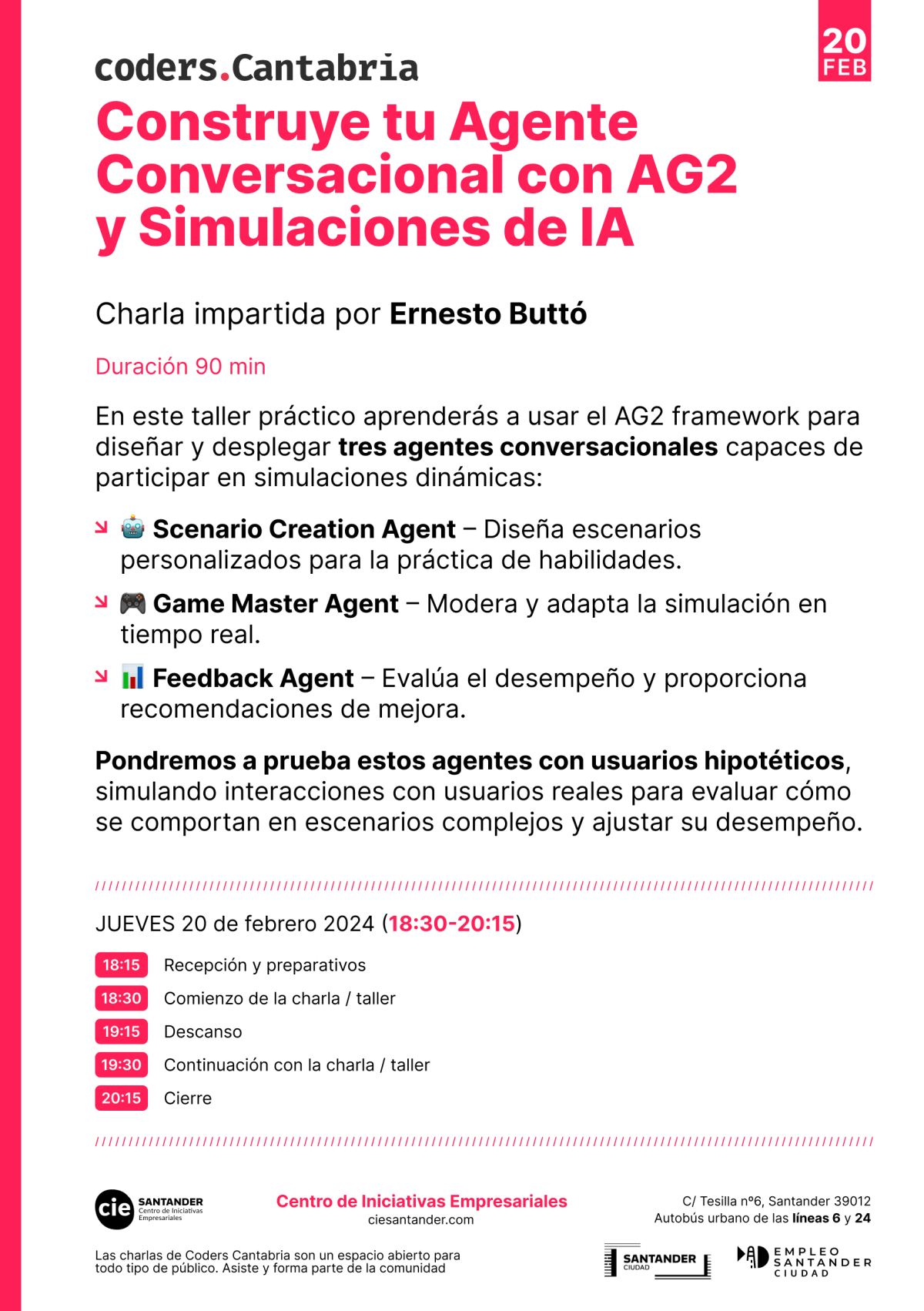 Haz hueco en tu agenda para la tarde del próximo JUEVES 20 de FEBRERO 🗓️ y únete a nosotros en nuestra próxima sesión esta vez con un taller práctico de la mano de Ernesto Butto, así que, tráete tu equipo y prepárate para «picar» código!!